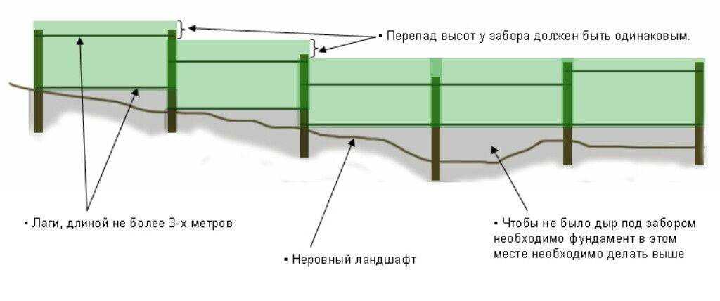 Один из способов планирования архитектуры забора при неровностях ландшафта