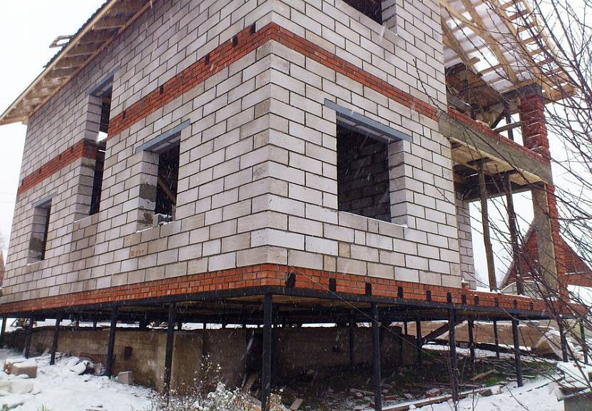 Большую ширину будет иметь лента при таком материале стен как газобетон с железобетонными перекрытиями, она составит для двухэтажной постройки 0,8 метров.