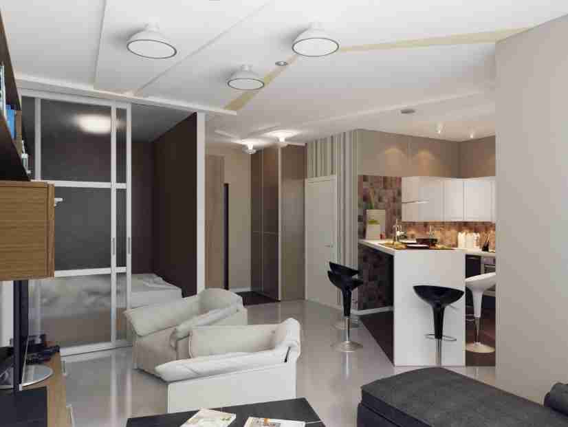 Зонирование однокомнатной квартиры с отдельной кухней