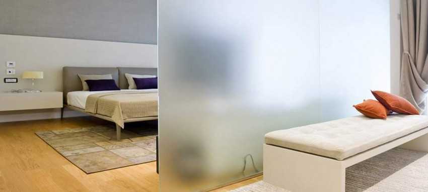 В зависимости от способа обработки, светопропускная способность матового стекла варьируется в пределах 15-75%. Они дают то, на что не способны прозрачные перегородки: эффект уединенности. Поэтому их можно использовать даже в спальне или объединенном санузле.