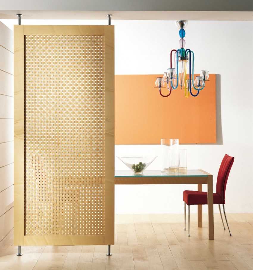 Мобильные перегородки (ширмы) – отличное решение для тех, кто любит время от времени обновлять интерьер. Аргументом в пользу таких перегородок также является относительно низкая стоимость и простота установки. Эти элементы тонкие и легкие. Они практически не «съедают» полезное пространство. К числу их недостатков можно отнести неустойчивость и недостаточную «солидность».