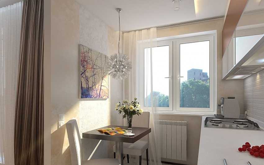 Близость кухни позволит сделать зону гостиной-столовой. Проём зрительно расширит и кухню, и комнату. Будет повод чаще приглашать друзей на обед, потому что хозяйке легче перемещаться от плиты к обеденному столу.