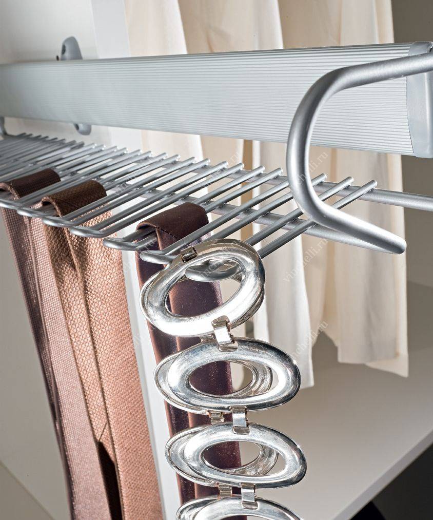 - для развешивания одежды и аксессуаров в гардеробной применяются штанги и складные вешалки для галстуков или ремней;