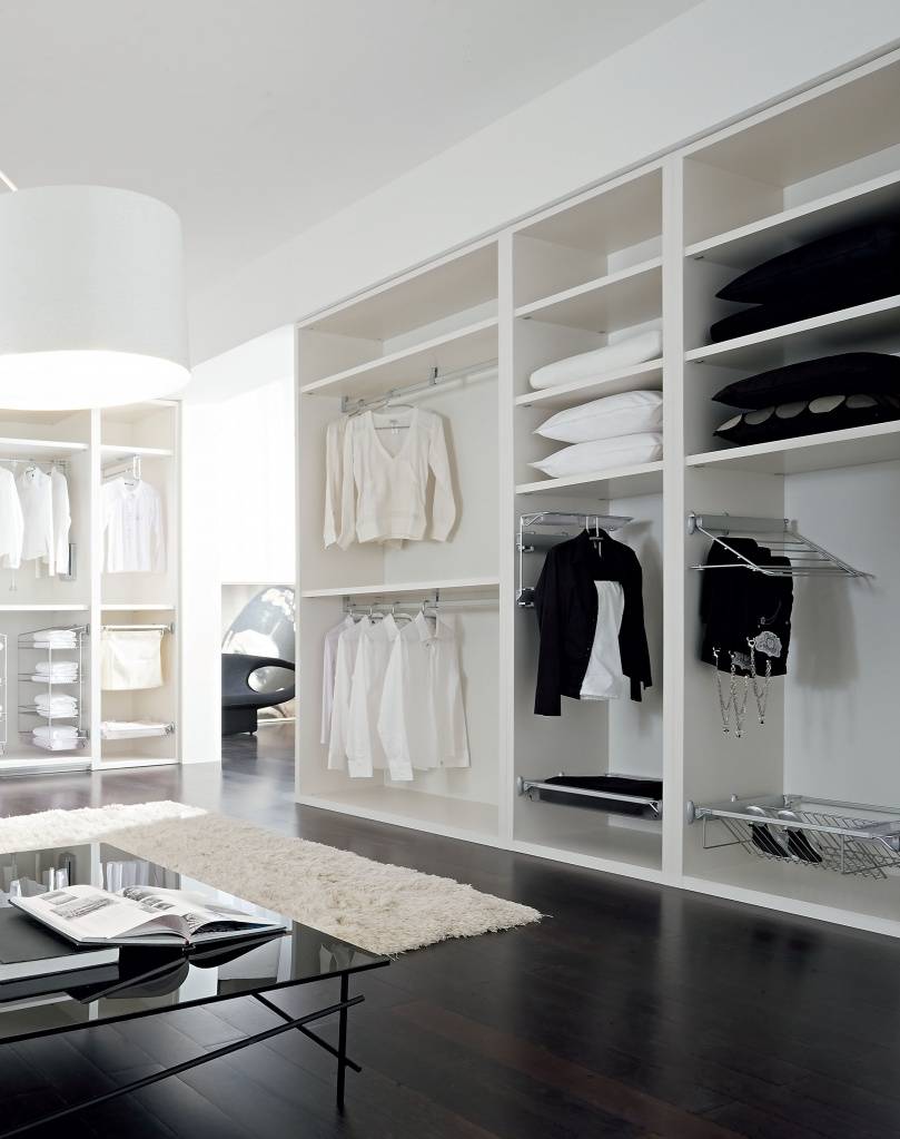 - если в большой гардеробной посередине устанавливается комод или столик, то его можно сделать передвижным при помощи колесиков.