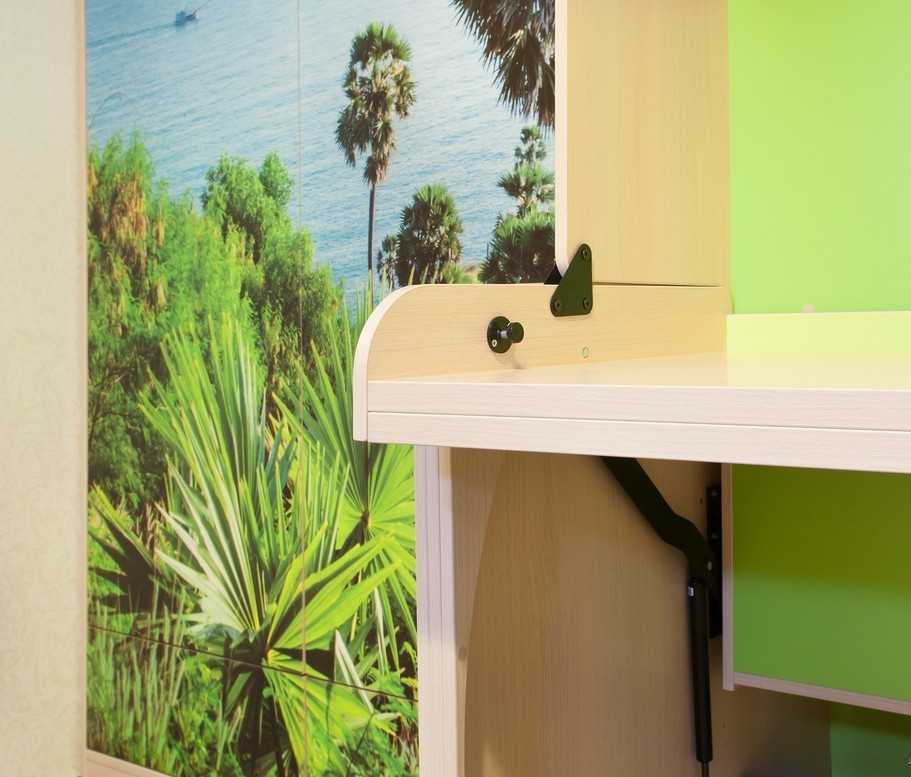Модным нововведением для настенных шкафов стали подъемные механизмы газлифт, а также системы открытия выдвижных ящиков от нажатия. В такой мебели нет ручек, и она прекрасно вписывается в хай-тек или минималистический стиль. Подобные системы все чаще применяются в спальных и гостиничных гарнитурах. Открытие нажатием в детских выдвижных ящиках не только снижает риски получить травмы, но и приносит массу удовольствия малышам.