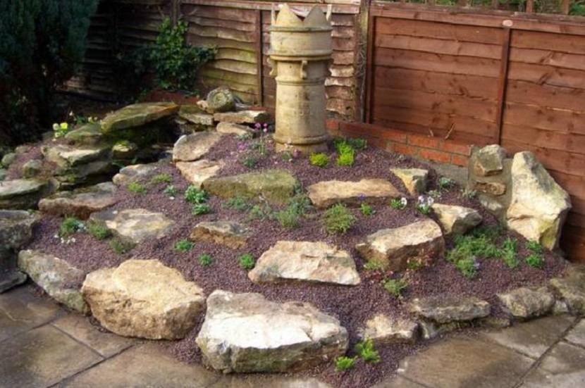 Небольшой рокарий в углу сада на дачеИсточник blogspot.com