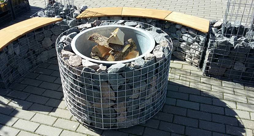 Габионы. Это оформление подразумевает создание необычной детали в виде сеточного каркаса, который заполняю камнями и цветной галькой. Материал может быть разной формы и размера.