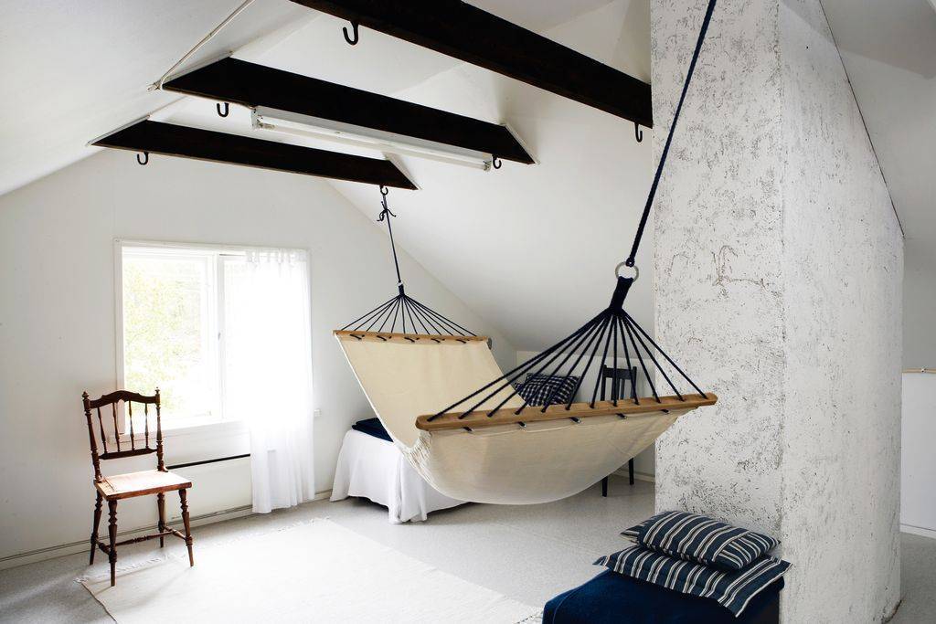Чтобы создать в своем доме нечто подобное, необходимо решить, каким образом будет крепиться сетка. Сама сетка является основной деталью и должна быть очень прочной – вес любого человека, который будет пользоваться гамаком должен учитываться с большим запасом, так как на поверхности одновременно могут оказаться несколько человек.
