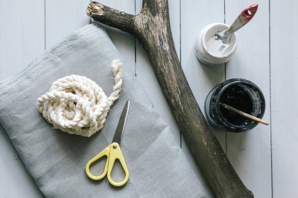 Поверхность коряги обрабатываем наждачной бумагой, чтобы убрать все неровности. Только после этого покрываем ее акриловой краской белого цвета и оставляем до полного высыхания.