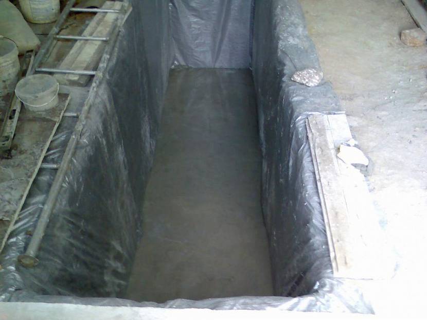 Дно заливается бетоном с добавлением водонепроницаемых компонентов.