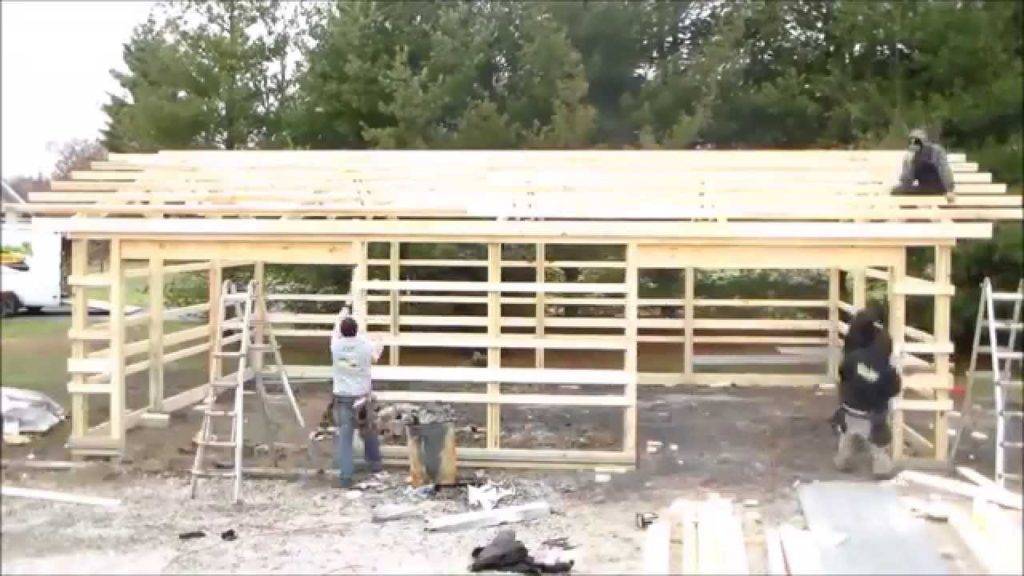 Процесс изготовления каркаса для гаража на две машины можно посмотреть на этом видео. Только учтите, что на записи каркасный гараж строится без установки фундамента (временная сборка).