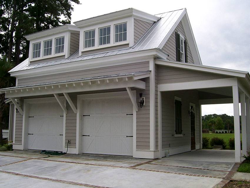 Автономный гараж на две машины не должен быть слишком большим, чтобы не доминировать над домом.