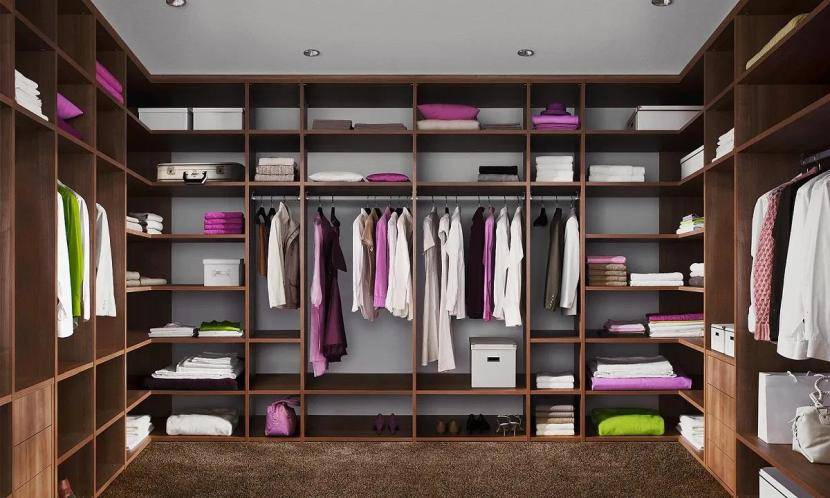 Гардеробная в маленькой комнате должна не только вмещать и правильно хранить весь объем одежды, обуви, сумок и прочих вещей, но также быть удобной в эксплуатации. Существует несколько вариантов решения данной проблемы: