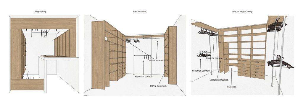 Каждая гардеробная комната должна состоять из трёх зон: нижней, средней и верхней.