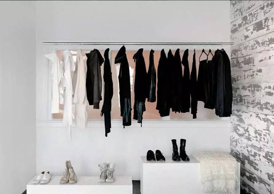 Для платьев и длинных сюртуков устанавливают дополнительную узкую штангу. Пиджаки, рубашки, блузки, юбки в целях рационального использования пространства хранят отдельно.