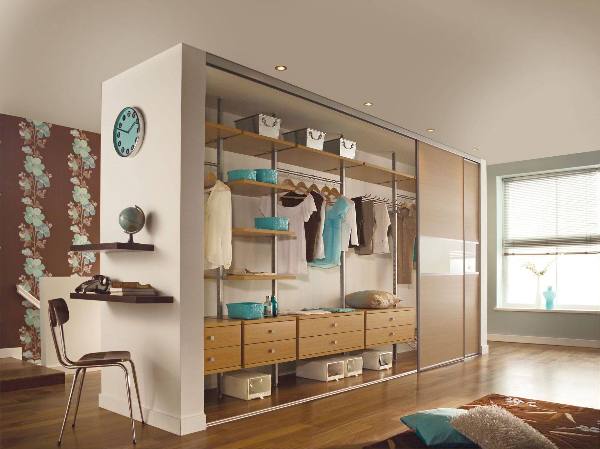 При комбинировании материалов, модулей можно сделать открытую или закрытую гардеробную с деревянными, металлическими или пластиковыми полками и ящиками. Первые хорошо проветриваются, а вторые не дают пыли попадать на одежду. Также можно сделать гардеробную с фасадом для уникальности интерьера или для создания отдельной комнаты под одежду. Двери следует подбирать под габариты помещения, учитывать место расположения шкафа.