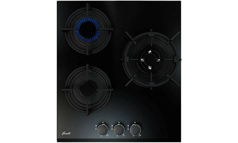 3-конфорочная газовая варочная панель. Корпус техники выполнен в красивом матовом чёрном цвете. Из 3 газовых конфорок разного размера, одна это WOK-конфорка, она отличаются от обыкновенных тройным пламенем. Эта модель практически идентична с моделью Fornelli PGA 45 Tordo, с той лишь разницей, что у PGA 45 Fiero покрытие из закалённого стекла. Необходимая степень нагрева регулируется с помощью 3 поворотных переключателей спереди. Электроподжиг делает начало готовки быстрым и комфортным и работает от кнопки. Так же есть система газ-контроль. Верхняя решётка сделана из чугуна. Размеры: высота – 4см, ширина – 45см, глубина – 51см , а вес равен 10кг.