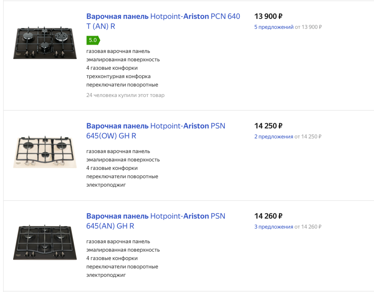 Остановила свой выбор на панели Аристон: недорого (на тот момент 8500 руб, сейчас порядка 13-15 тысяч), удобная форма расположения конфорок (ромбом), что еще надо?
