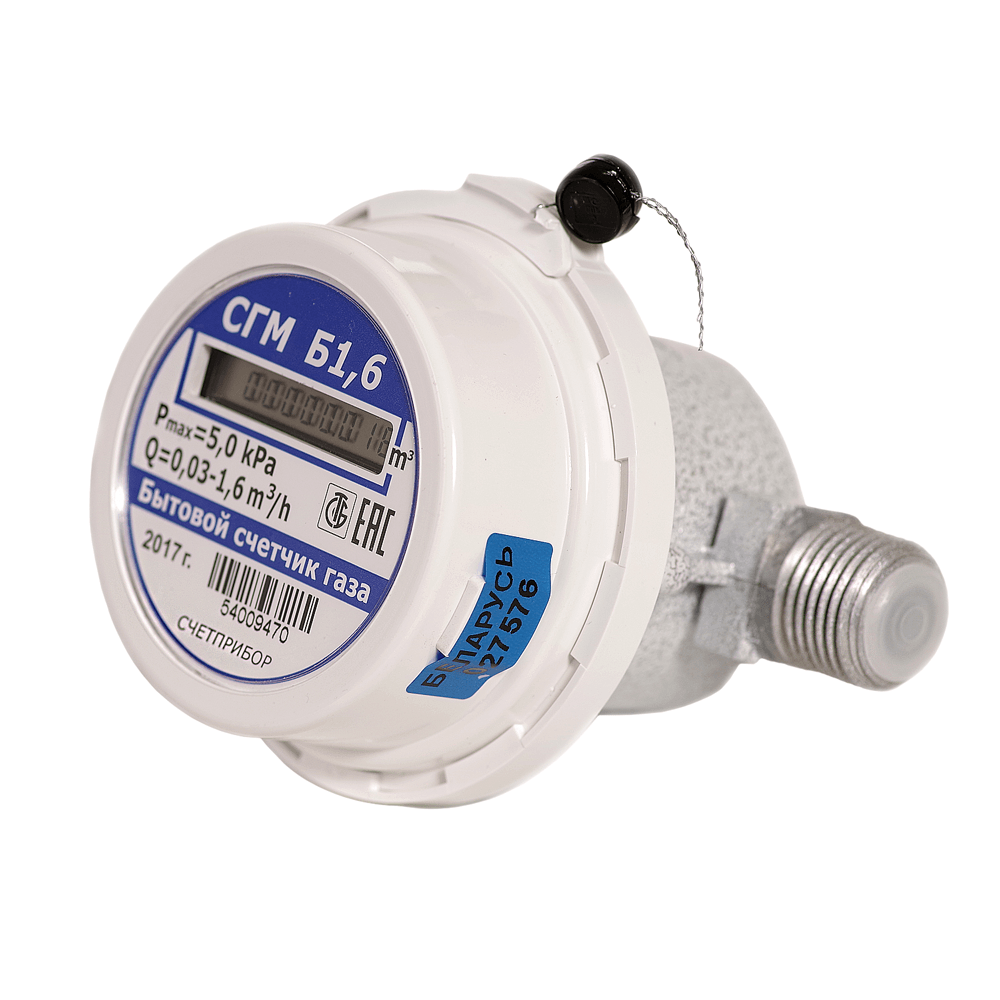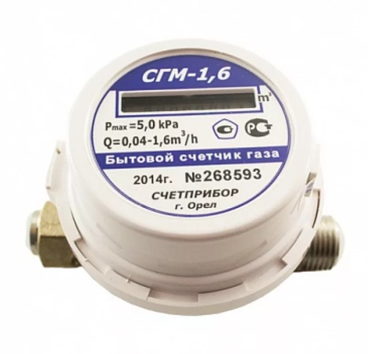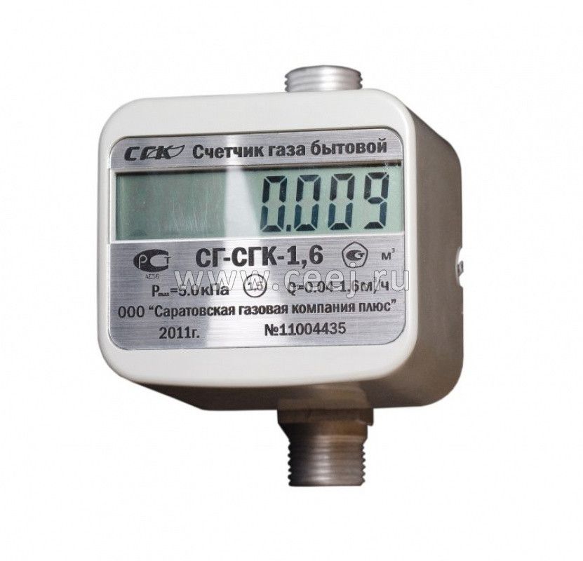 В электронные счетчики для питания устанавливается литий-ионный аккумулятор. Срок эксплуатации 12 лет. Реализуют в нескольких модификациях (пропускная способность бытовых устройств): 1,6 / 2,3 / 3,2 / 4. Можно приобрести устройство с термокорректором, это позволит точно учитывать количество израсходованного газа.