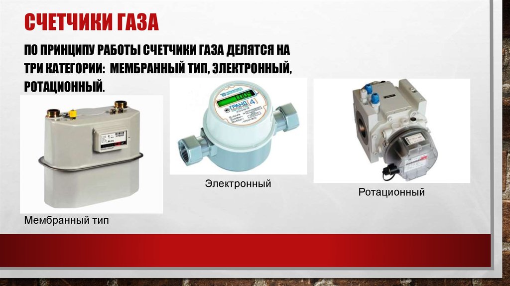 Природный газ не имеет запаха, но любая утечка в жилом помещении ощущается практически сразу. Это следствие добавления одорантов, которые легко распознаются человеческим обонянием и делают метан относительно безопасным топливом. Для учета количества потребляемого газа используются приборы – счетчики. Основными элементами счетчиков являются корпус, камера (куда из газопроводной трубы попадает газ), механизм учета и цифровое табло. Способы измерения и выдачи информации у разных моделей могут основываться на различных инженерных принципах, что влечет за собой и особенности корпуса, способов монтажа и т. д.