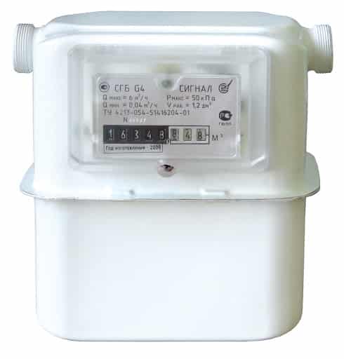 - СГК-G4 Сигнал (ООО «ЭПО СИГНАЛ», г. Энгельс). Счётчик предназначен для установки в частных домах, квартирах, общественных учреждениях, мастерских и на территории промышленных предприятий.
