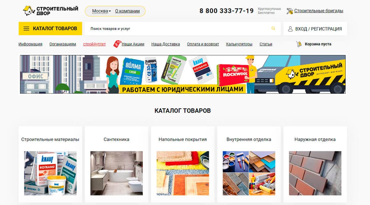 Большая часть ассортимента магазина Строительный двор продается в розничных точках в таких городах как Москва, Тюмень, Челябинск, Сургут и Екатеринбург