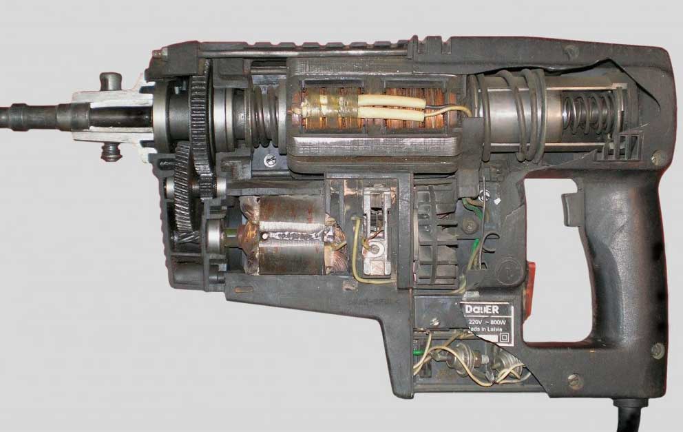 Как правило, применяется двигатель коллекторного типа. Также на большинстве моделей используется, так называемая, схема реверса (возможно применение в качестве шуруповерта).