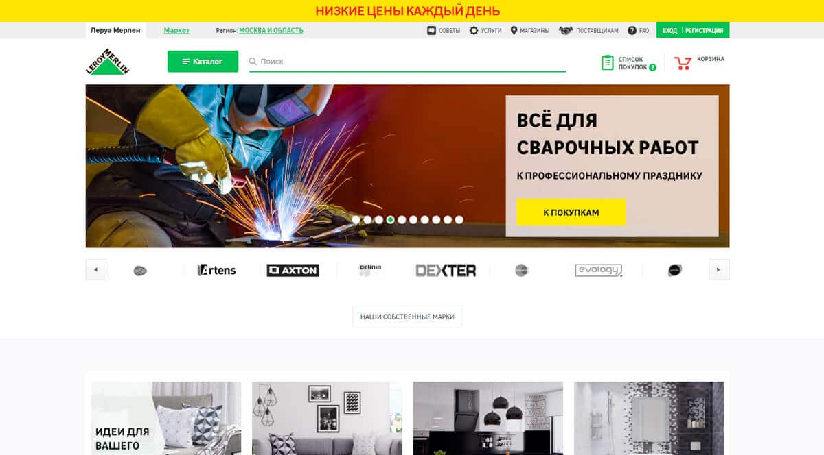 Леруа Мерлен предлагает отличные цены на строительные инструменты из большого каталога электротоваров. К популярным разделам относятся УШМ (болгарки), циркулярные пилы, сварочные аппараты, мойки высокого давления и строительные пылесосы. Стоимость столярного инструмента начинается от 150 руб., а цена высококачественных инструментов достигает 15 000 рублей.