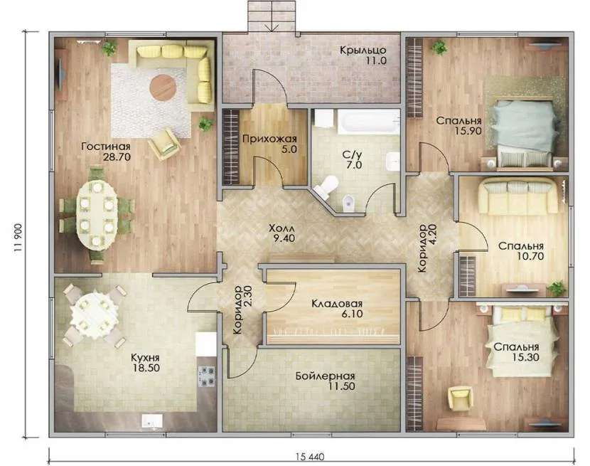 Проектирование – сложный многоступенчатый процесс, во время которого специалисты предусматривают множество важных деталей. О существовании многих из них заказчик, не связанный со сферой строительства даже не подозревает. Однако существуют нюансы, которые позволяют оценить грамотность и, следовательно, выгодность проекта. Преимуществами считаются следующие особенности планировки 1-этажного дома с 3 спальнями: