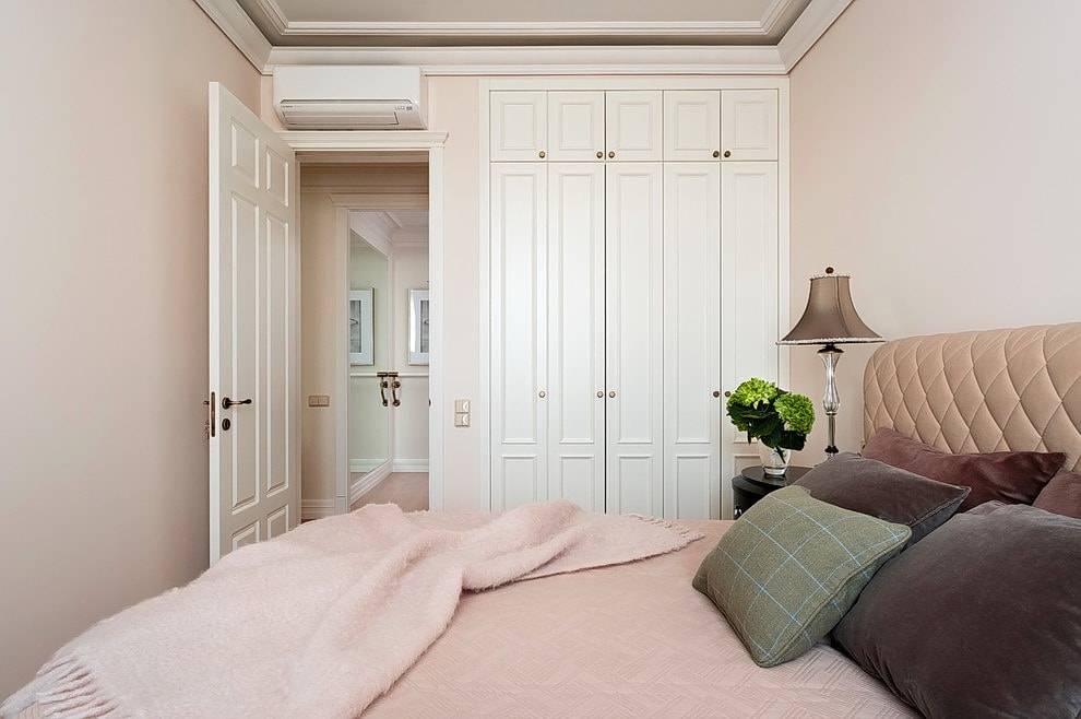 Модель кондиционера нужно выбирать в зависимости от площади спальни и стиля, в котором она выполнена