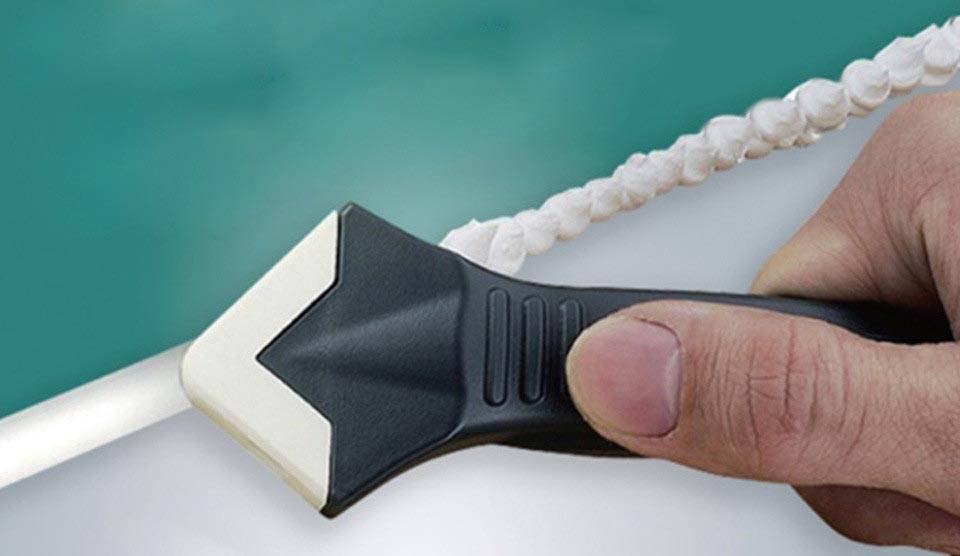 Если нет резинового шпателя, то можно воспользоваться теркой. Для этого берется наждачная бумага, один из ее углов закругляется. Такой инструмент для нанесения не всегда позволяет полностью заполнить шов, поэтому иногда нужно будет корректировать углы пальцев.