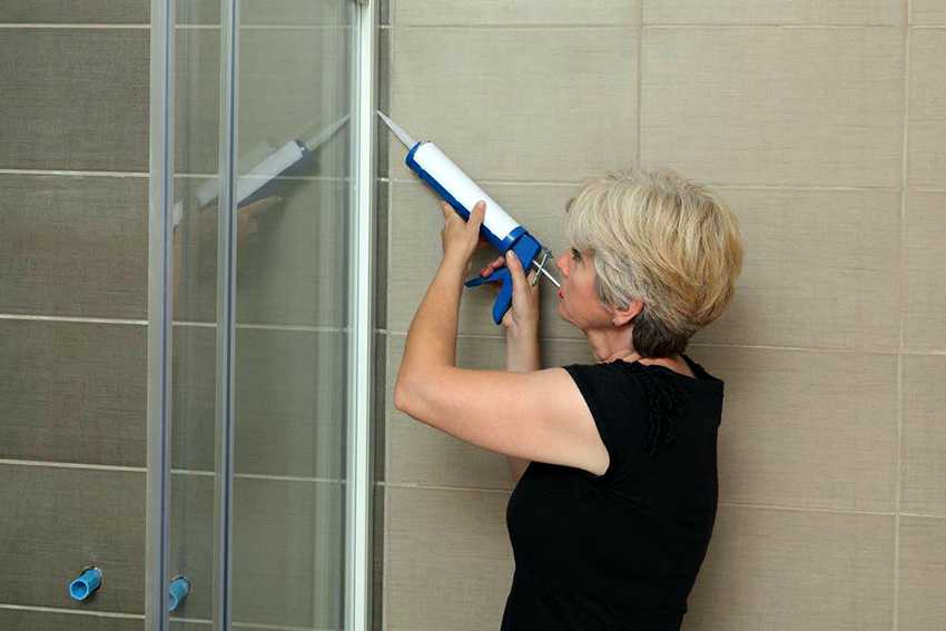 С помощью герметика производится заделывание стыков между душевой кабиной и стеной.
