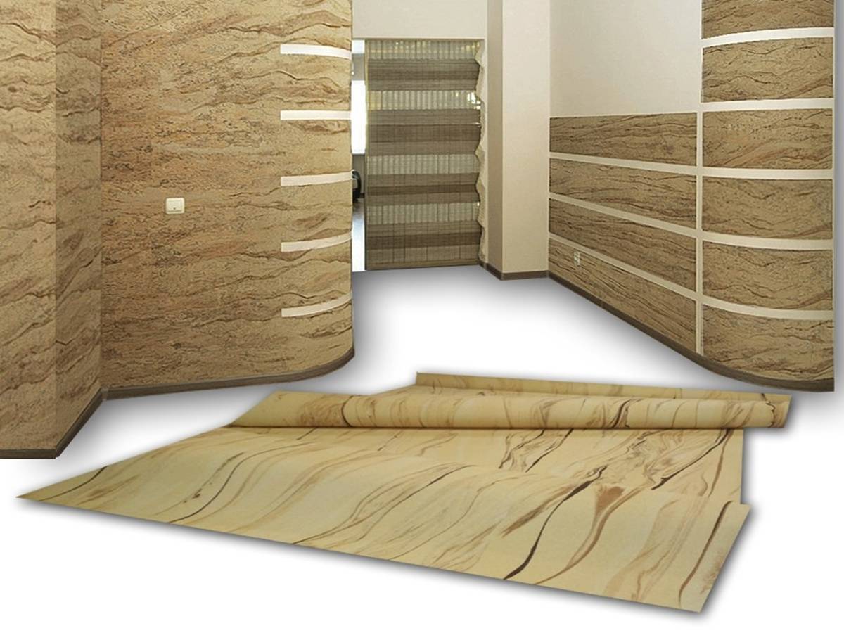 Гибкий мрамор – альтернатива природному камню. Это тонкая пластина с поверхностью из мраморной крошки, способная принимать любые необходимые формы. С лицевой стороны мраморное покрытие имеет защитный слой. Внешне он идентичен природному мрамору, но проще в монтаже, составляет в толщину всего 2-5 мм. Гибкий мрамор сохраняет большинство характеристик горной породы.