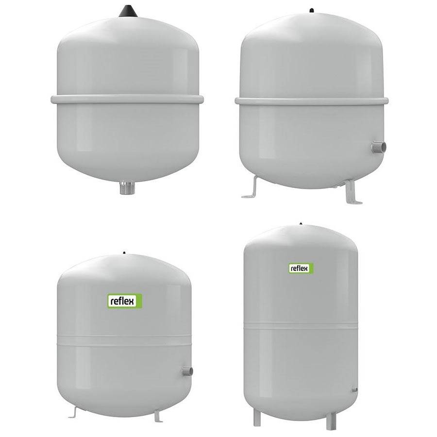 У многих моделей баков азотная камера в заводских условиях наполняется газом до давления в 1,5 бара. В зависимости от комплектации, резервуар может оборудоваться незаменяемой мембраной или сменной оболочкой. Представленные в продаже емкости отличаются между собой по номинальному объему, форме, размерам и диапазонами рабочего давления – от 3 до 10 бар. Многие баки из ассортимента способны хранить жидкость, температурой до 120 °C. Небольшие расширительные баки Рефлекс, к примеру, модель NG8, можно монтировать на стену в вертикальном положении. Более крупные резервуары нужно устанавливать на землю с использованием специальных опор.