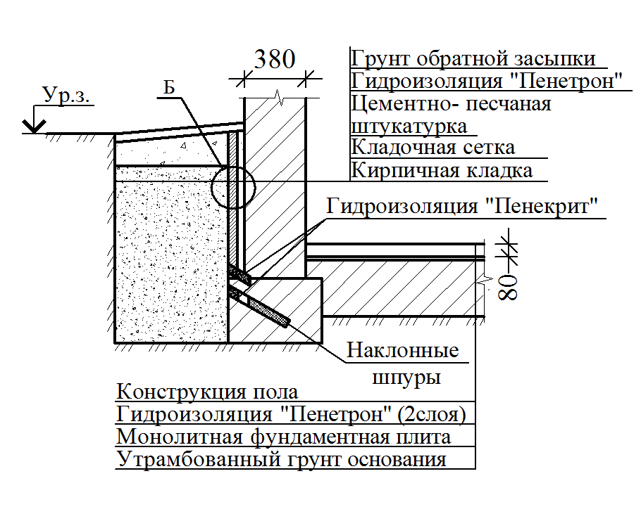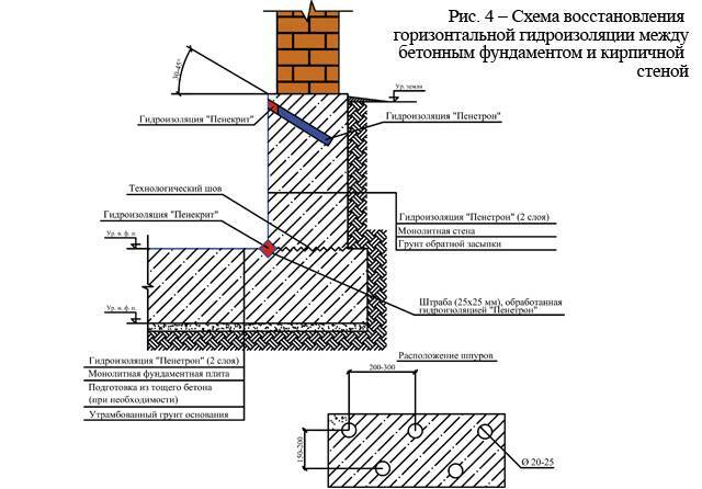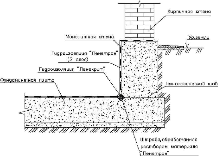 Технология выполнения изоляции фундамента от воздействия воды подразумевает использование и таких современных материалов, как Пенетрон, Пенекрит, Пенеплаг и Гидрохит.