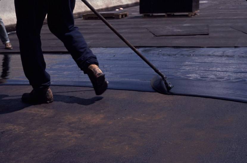 После его полного высыхания приступают к нанесению основного слоя. Производить работы можно с помощью валика, температура мастики должна составлять не меньше 40 градусов.