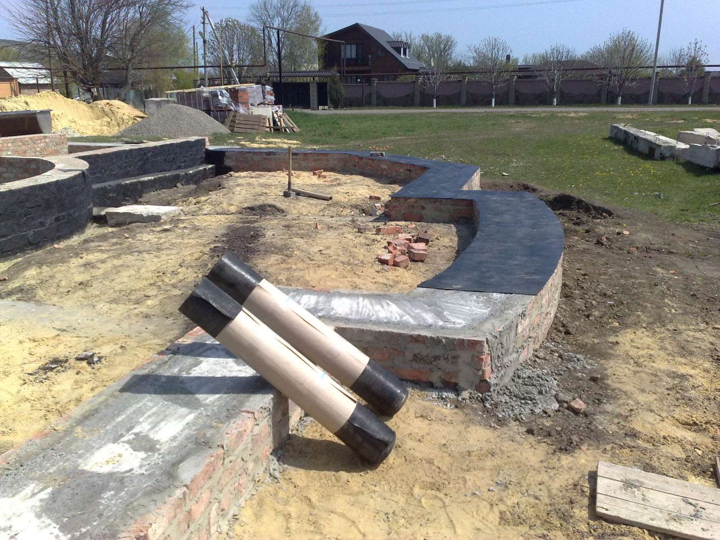 - Подготавливается поверхность фундамента, выполняются гидроизоляционные работы.