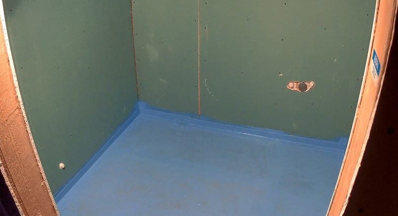 После засыхания грунтовки гидроизоляционной мастикой промазываются все углы, и приклеивается специальная гидроизоляционная лента.