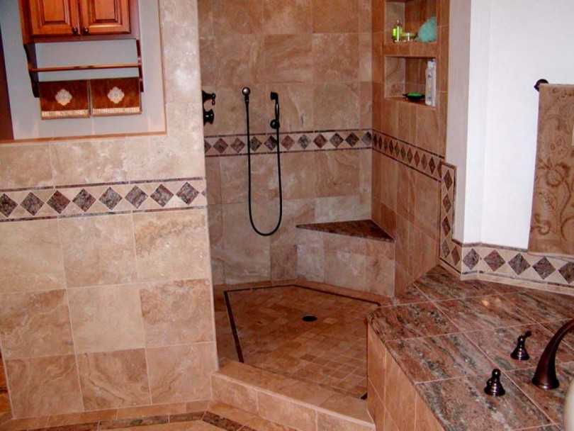 - Плитка. Представлена в огромном ассортименте: гладкая и рельефная, однотонная, с орнаментом, крупная или мозаика. Она крепится водостойким клеем, а швы обрабатываются полиуретановым эластичным герметиком;
