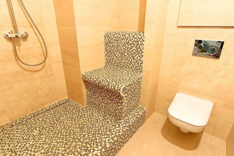 Выбирайте материал, с помощью которого будет осуществляться гидроизоляция, обеспечиваться водонепроницаемость. Оптимальный выбор — керамическая плитка. Но если хотите сохранить ванну «в дереве», тогда не забудьте про защитные покрытия.