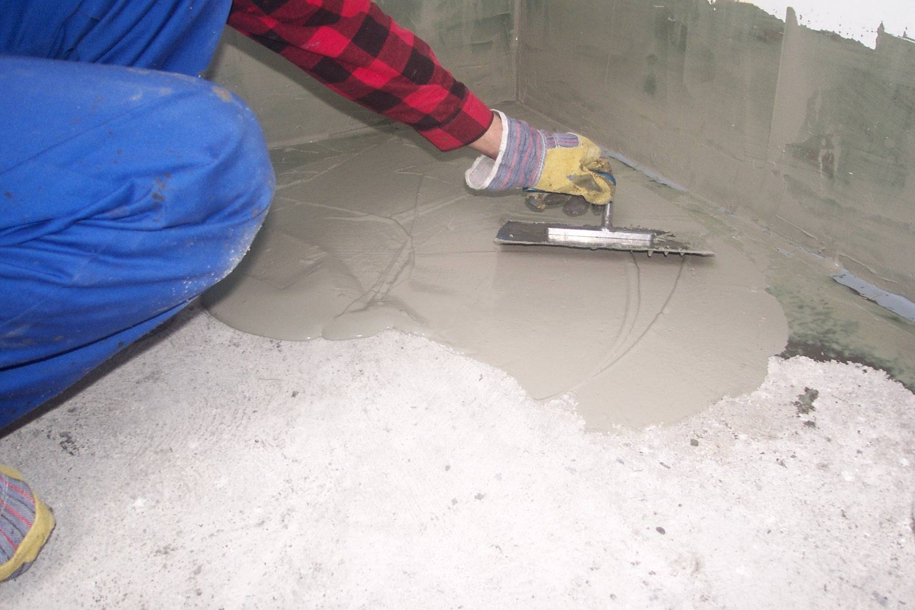 Нанесение обмазочной гидроизоляции на пол