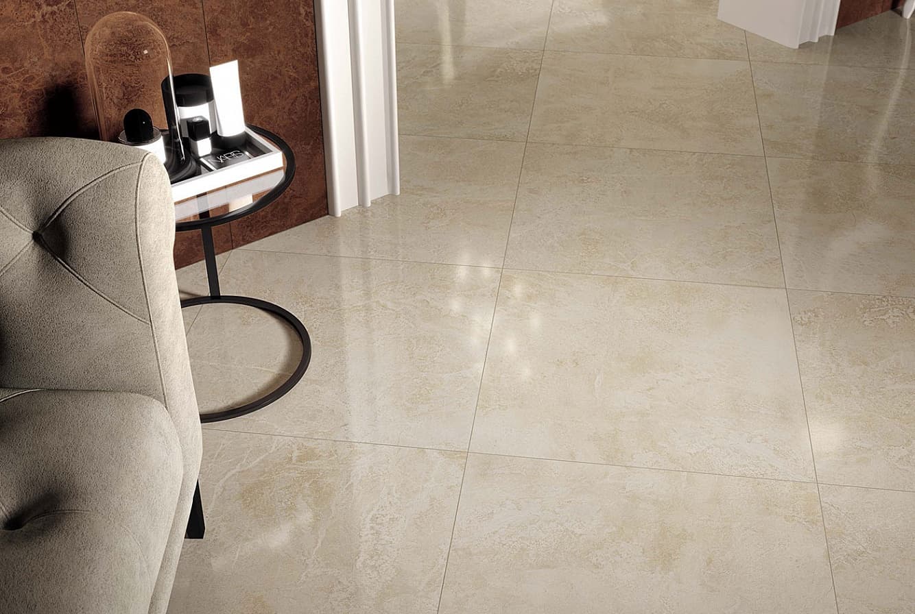 Лощеный керамогранит идеально подходит для пола и стен.