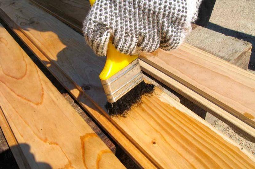 После того, как высохнет последний слой, нужно дополнительно покрыть лаги лаком, это защитит пропитку от вымывания. Тот же алгоритм подходит для досок пола. Никаких дополнительных средств защиты не требуется.