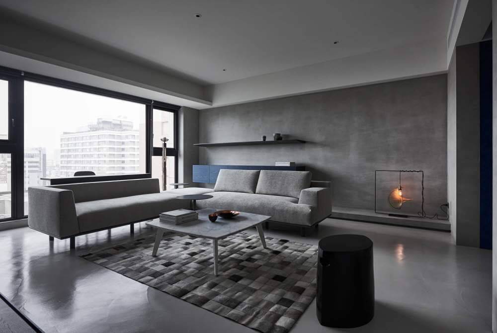 Наличие черного, серого и стеклянного подчеркнет современный стиль гостиной, не нарушая при этом ее минималистский характер. Черные акценты могут появляться, например, на границах коврика, в форме рамок для картин или подушек с геометрическими узорами.