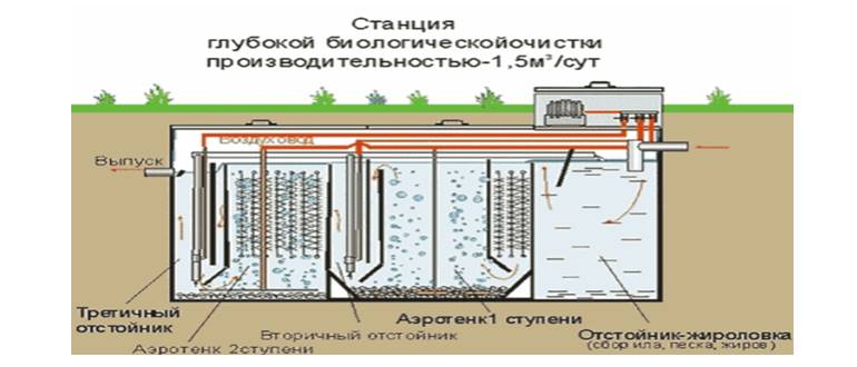 Переработка стоков посредством аэробов происходит в станциях глубокой очистки. Преимущественно, подобные сооружения включают в себя около 3 или 4 отсеков.