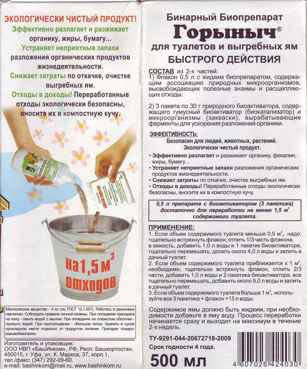 Согласно инструкции по применению биопрепарата для выгребных ям и туалетов «Горыныч» требуется учитывать наполняемость емкости с нечистотами: