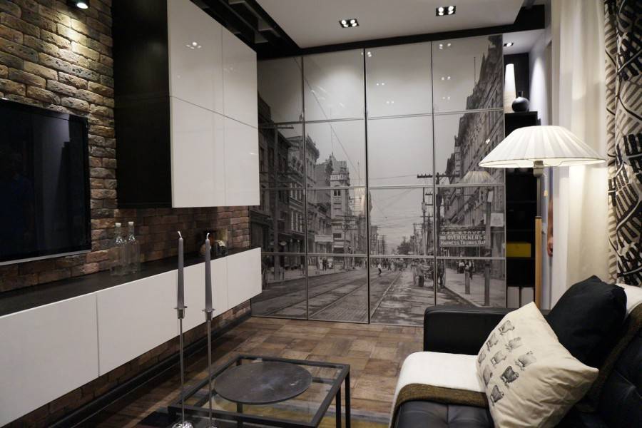 Совет. Чтобы множественные предметы мебели не занимали много пространства, покупайте низкие диваны и кресла с низкими спинками. Журнальный столик лучше выбрать со стеклянной столешницей. Корпусную мебель замените оригинальными неглубокими полками открытого типа и двусторонними стеллажами. Их рекомендуется использовать и в качестве перегородок для зонирования.