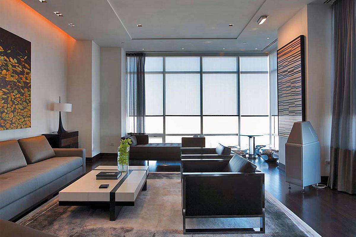 Если в гостиной присутствует много света, то вы сможете смело обращаться к темным предметам мебели или отделки, которые являются допустимыми в современных стилях. Также можно обратиться к нескольким уровням освещения.