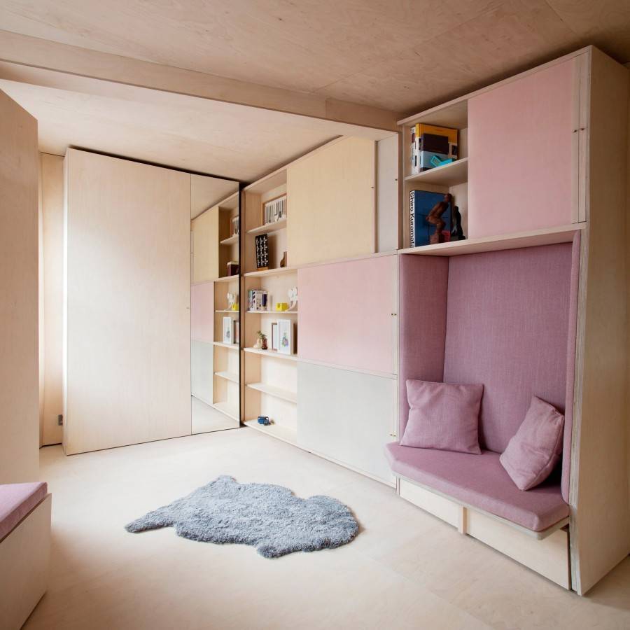 Также для обстановки помещения подойдут выкатные тумбы и столы, которые не загромождают место в том случае, если в настоящий момент не используются.