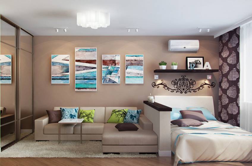 Стандартные решения для цветовой планировки спальни-гостиной площадью 17 кв. м: